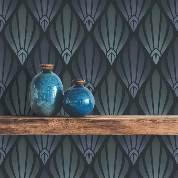 Wallpapers Cool blue-grey Art Deco with fan-shaped forms No. a01064v3
