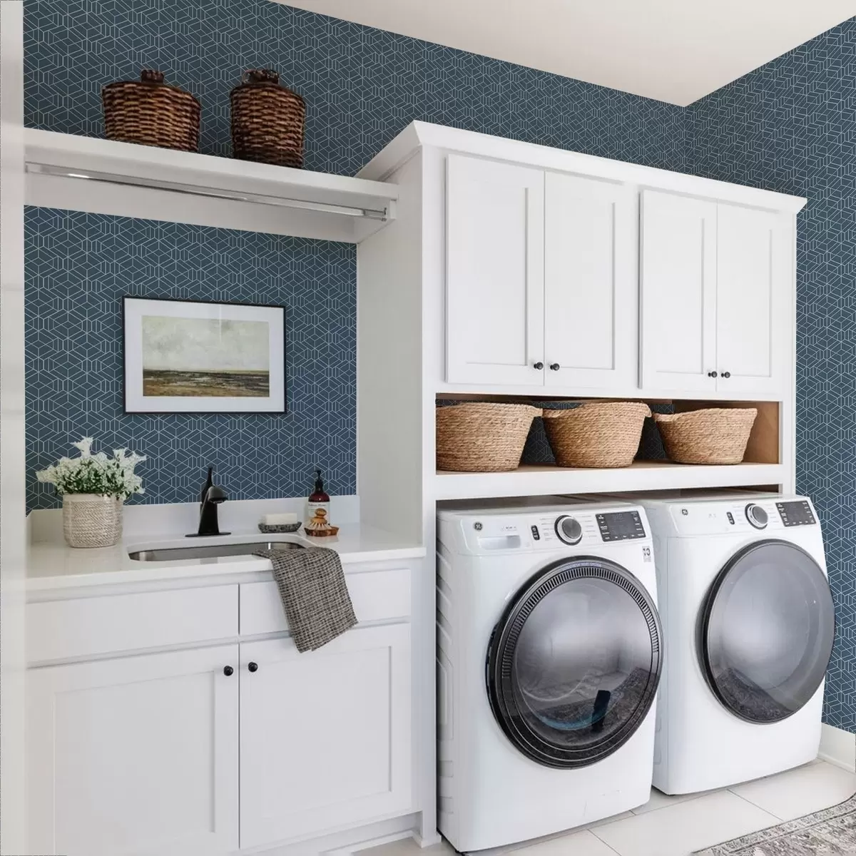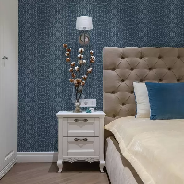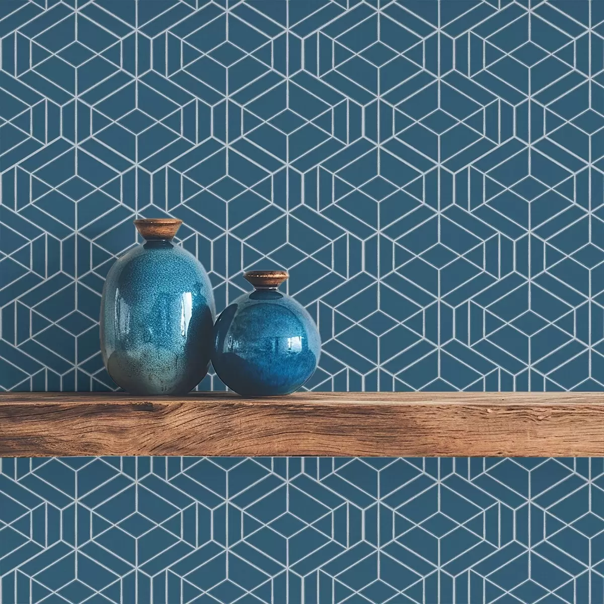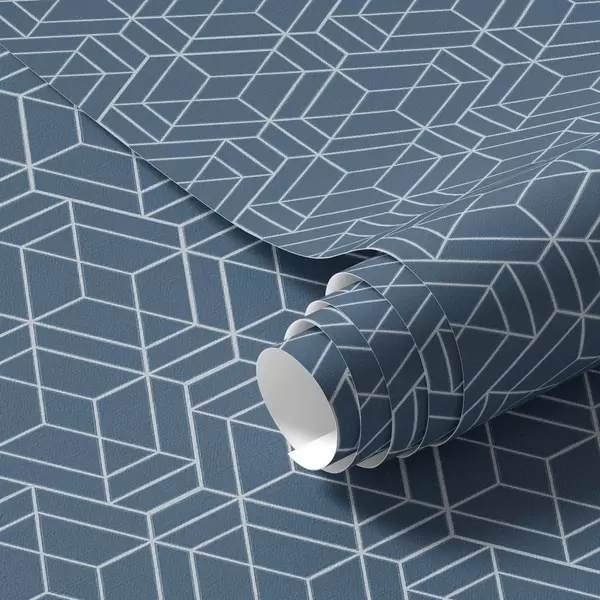 Wallpapers Blue background with white linear cubes in a grid No. a01067v1