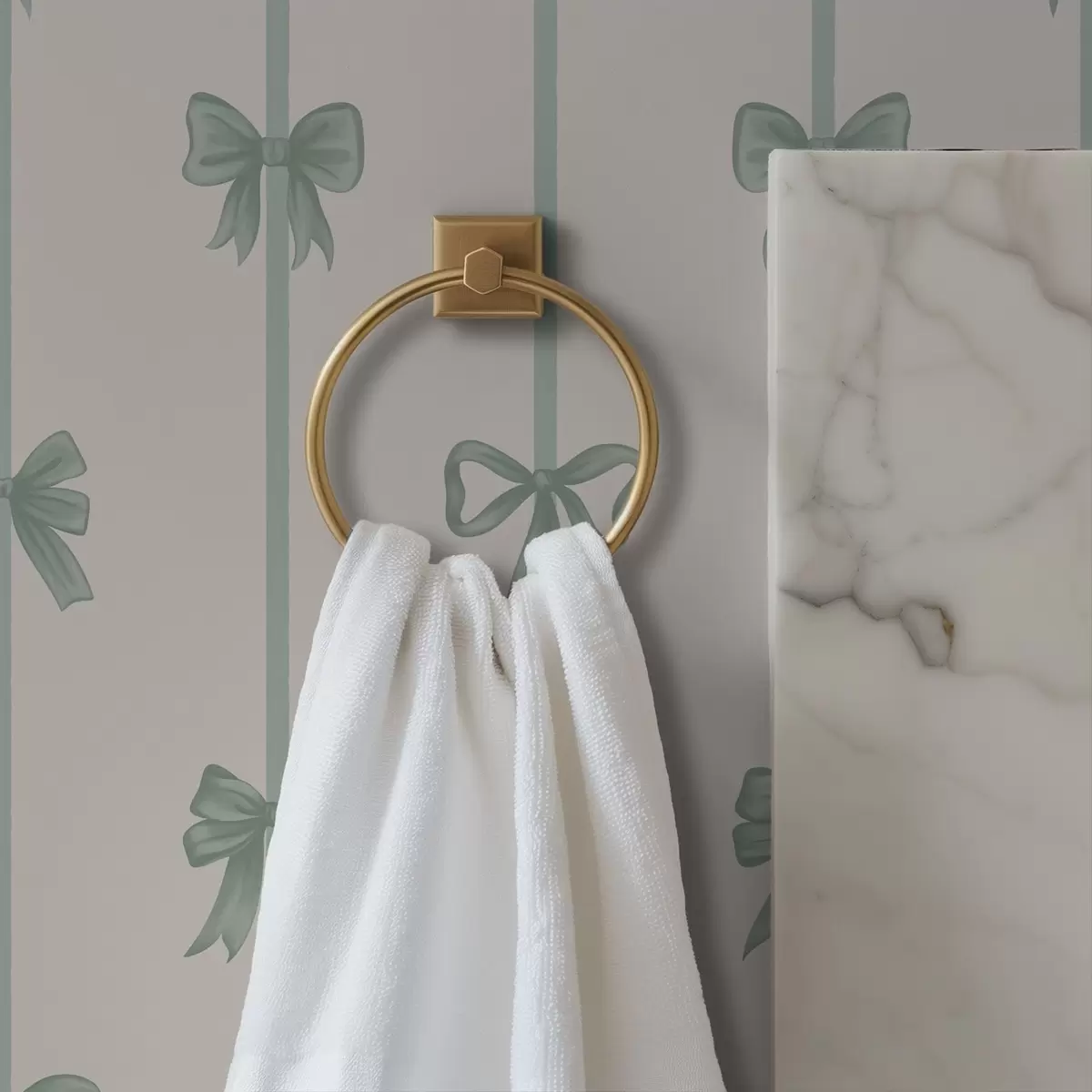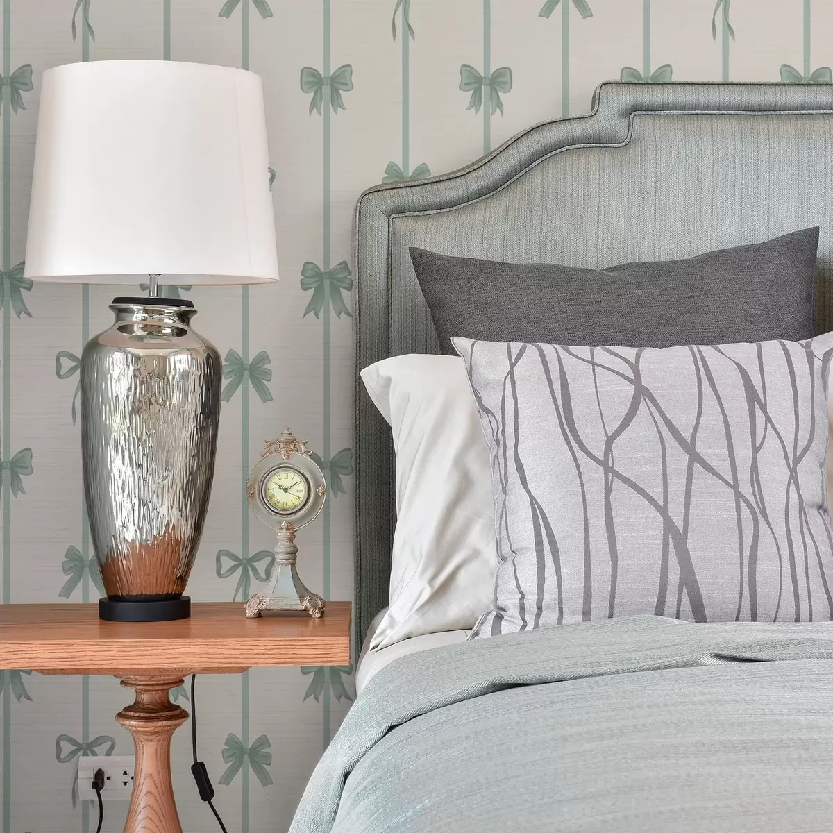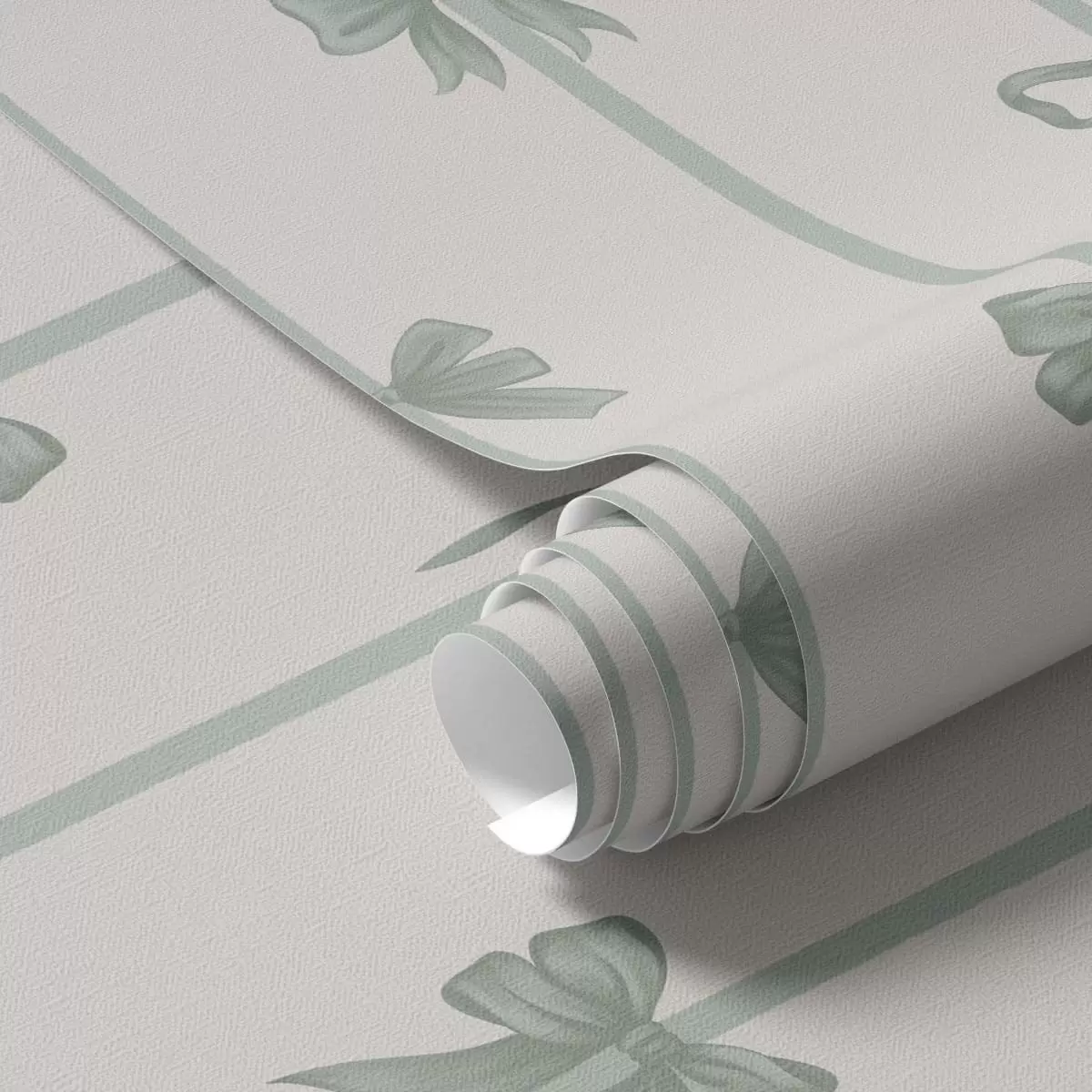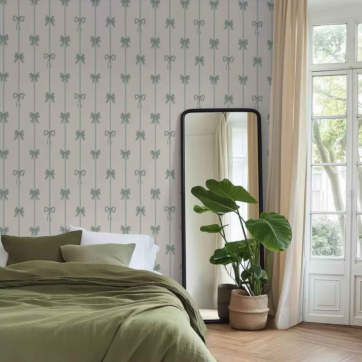 Wallpapers Green bows with ribbons on beige background No. a01074v1