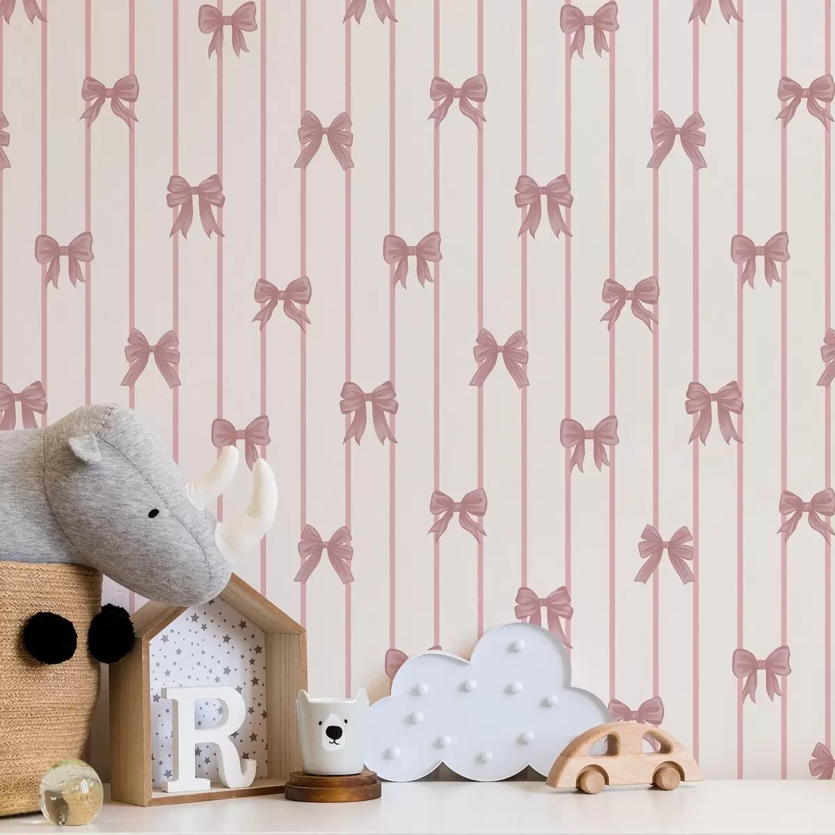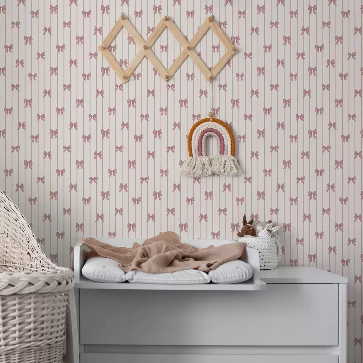 Wallpapers Small pink bows in vertical stripes No. a01076