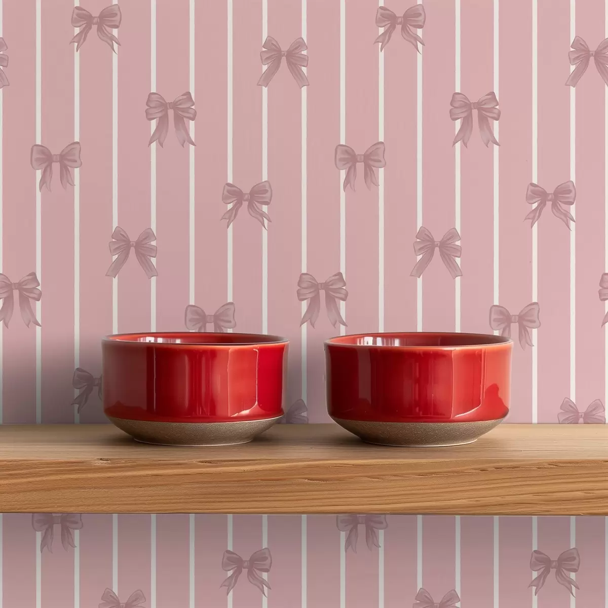 Wallpapers Small pink bows on pink striped background No. a01076v1