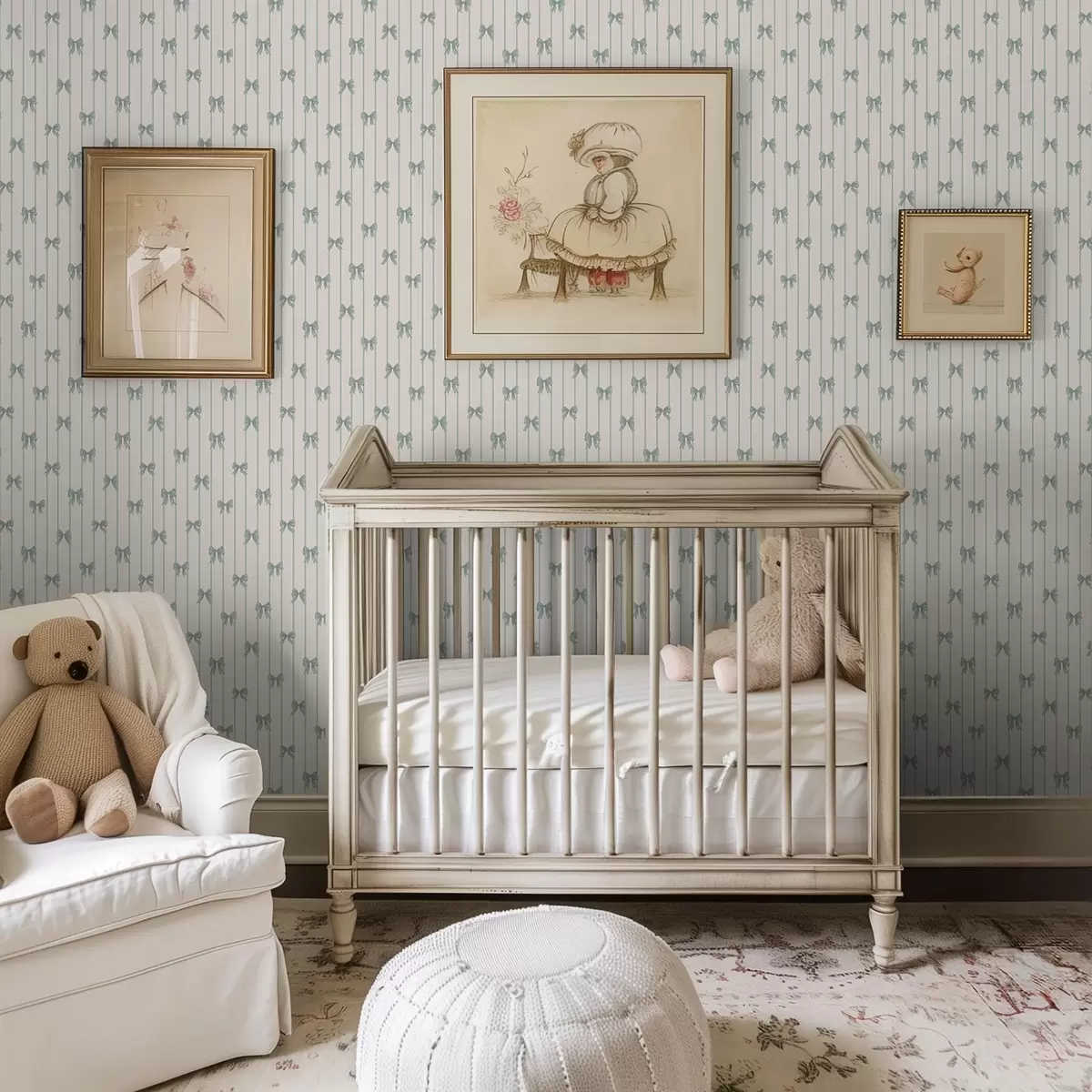 Wallpapers Small green bows in stripes on beige background No. a01076v2