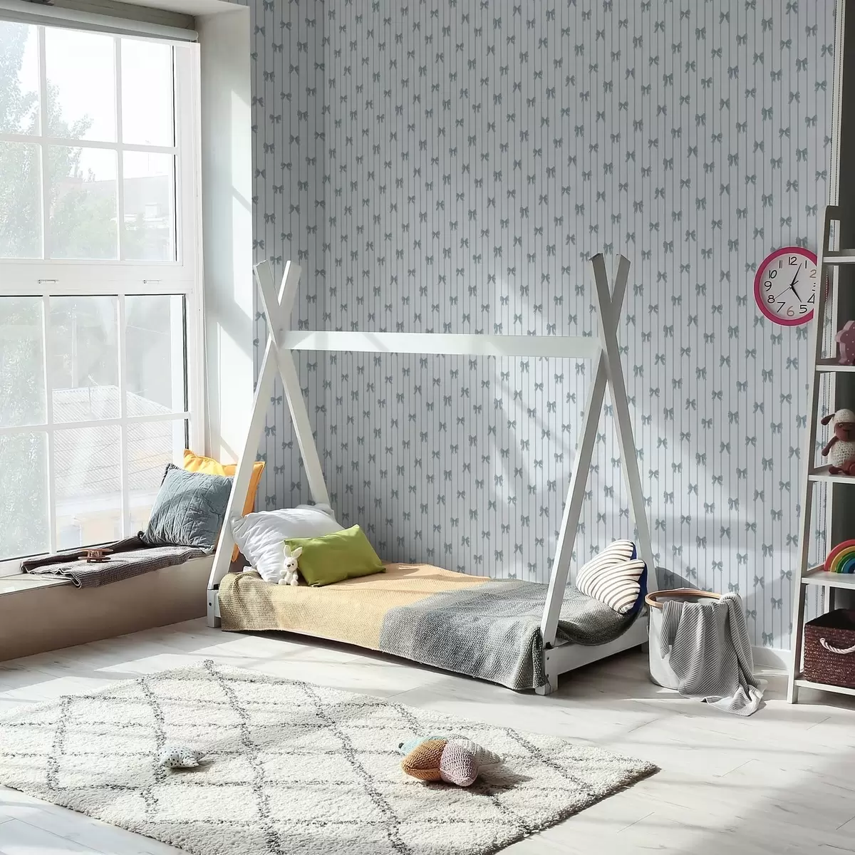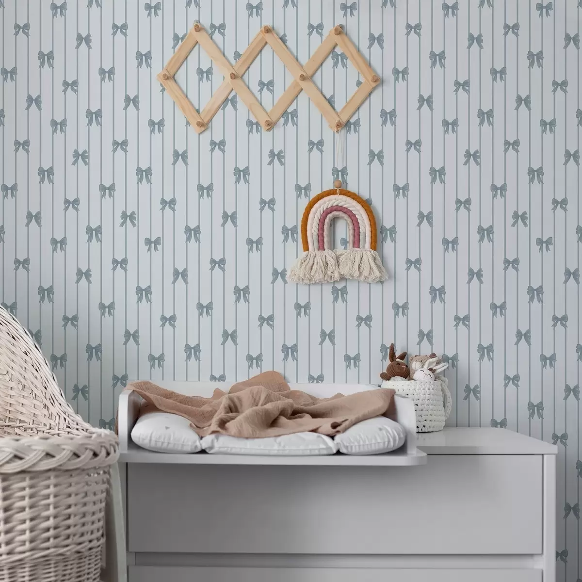 Wallpapers Light striped pattern with ribbons and bows No. a01076v3