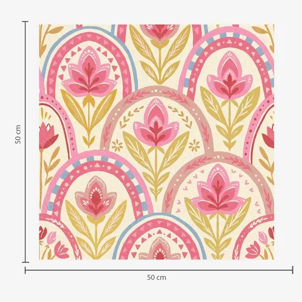Wallpapers Arches with pink flowers in a folk-style pattern No. a01080