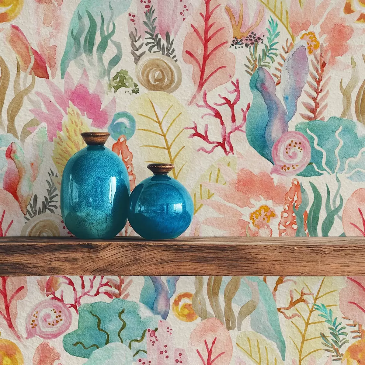 Wallpapers Watercolour underwater garden with corals and seaweed No. a01083