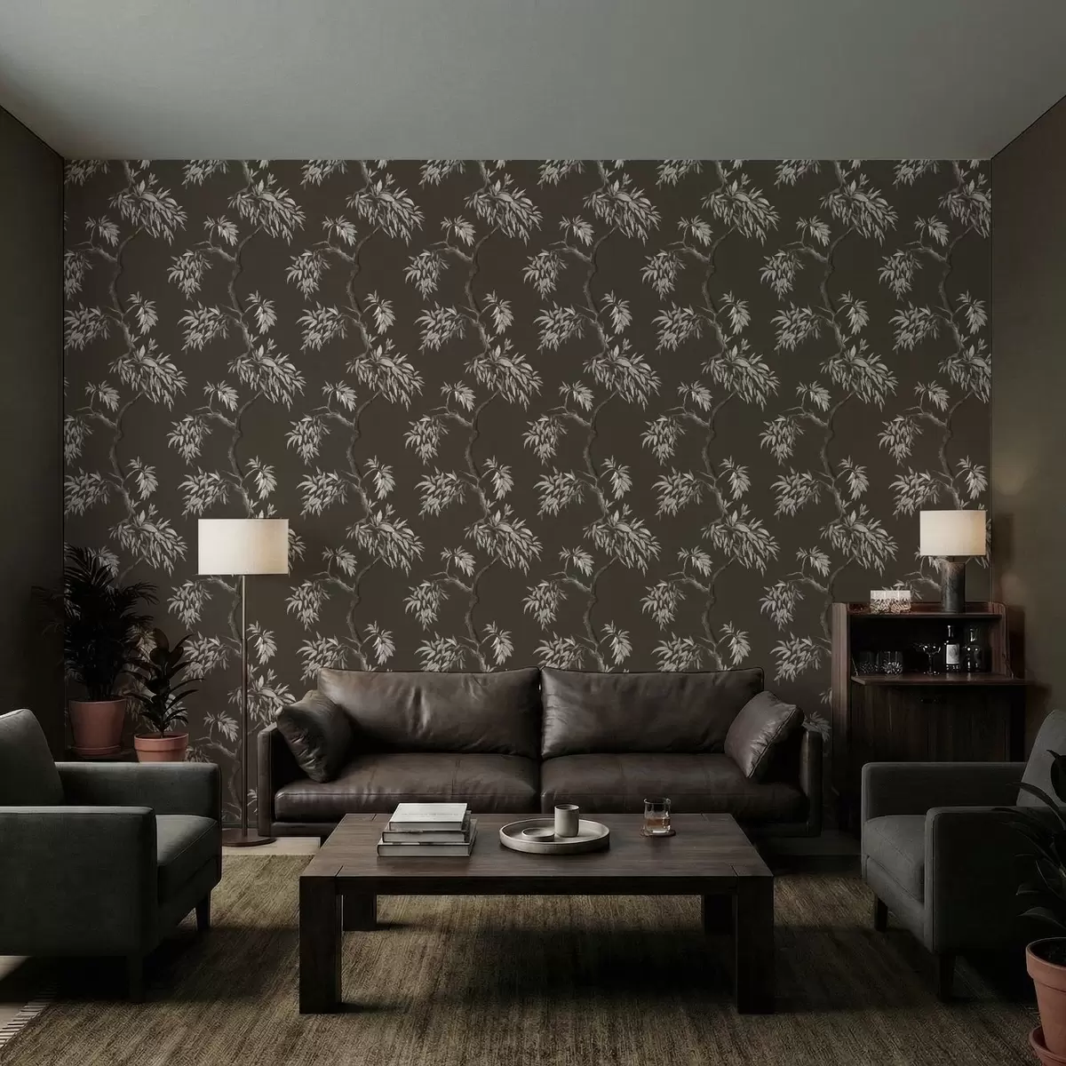 Wallpapers Monochrome branch with leaves on dark background No. a01117v2