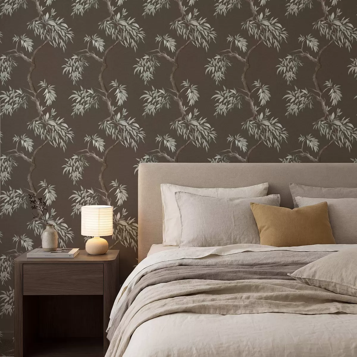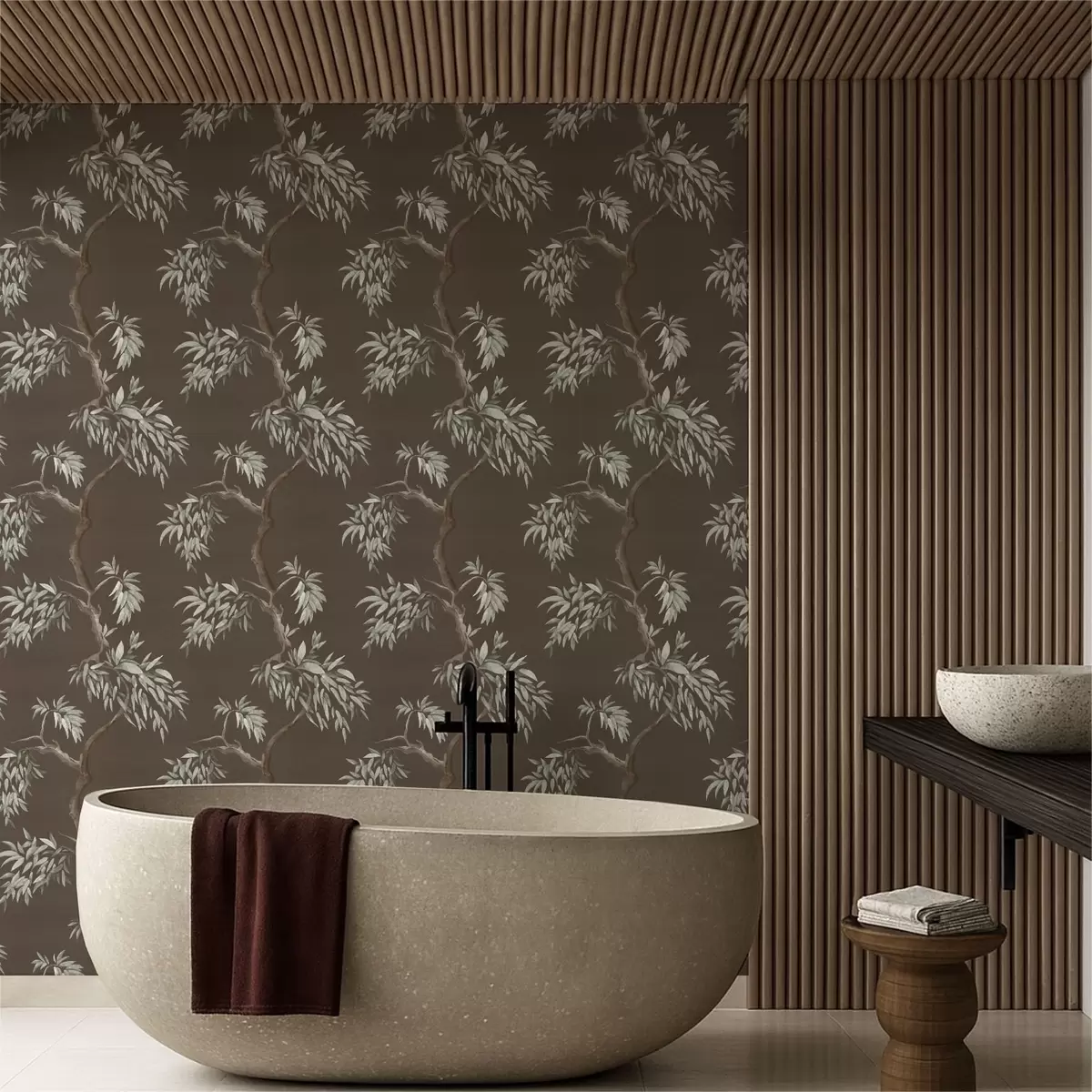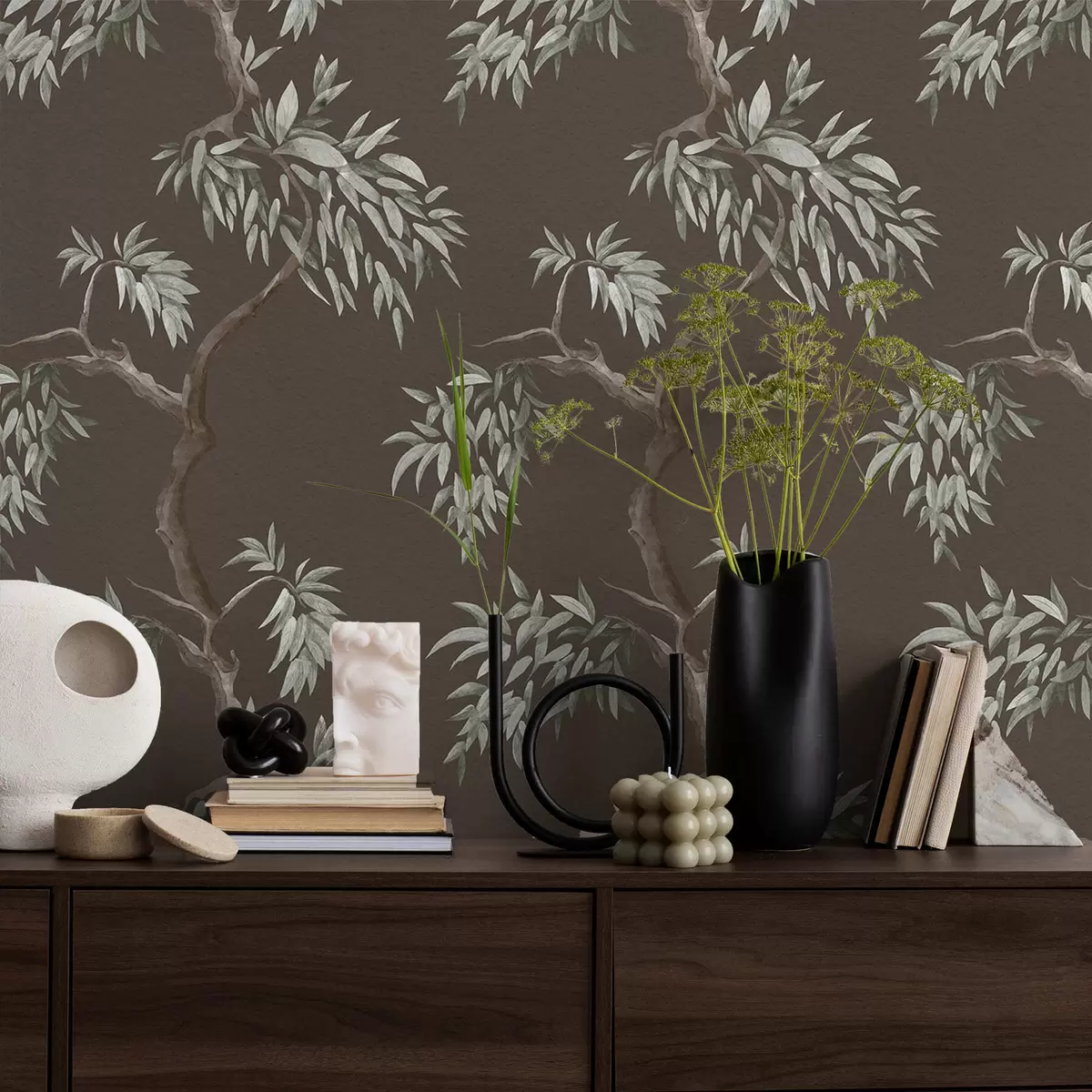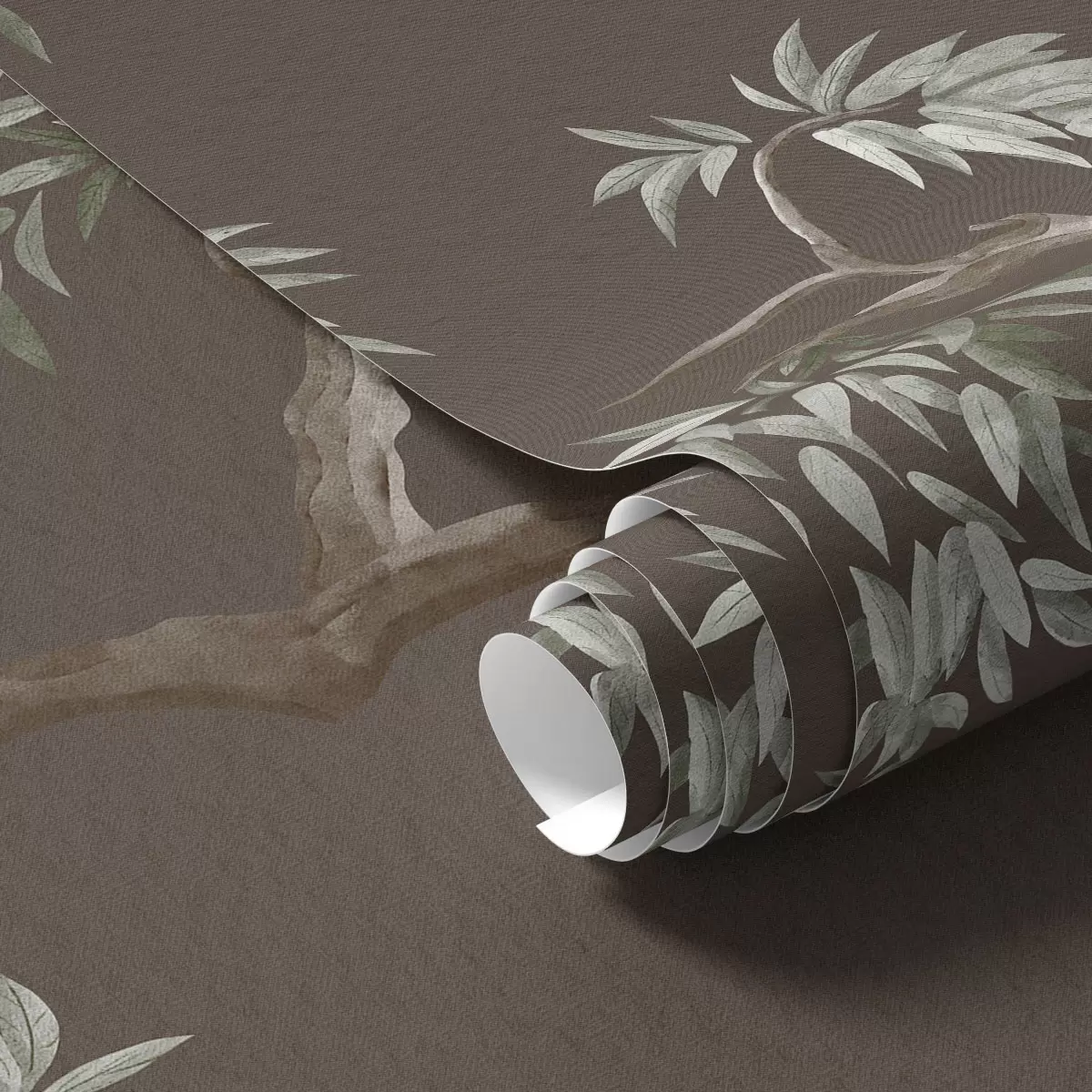 Wallpapers Tree branch with leaves on brown background No. a01117v3