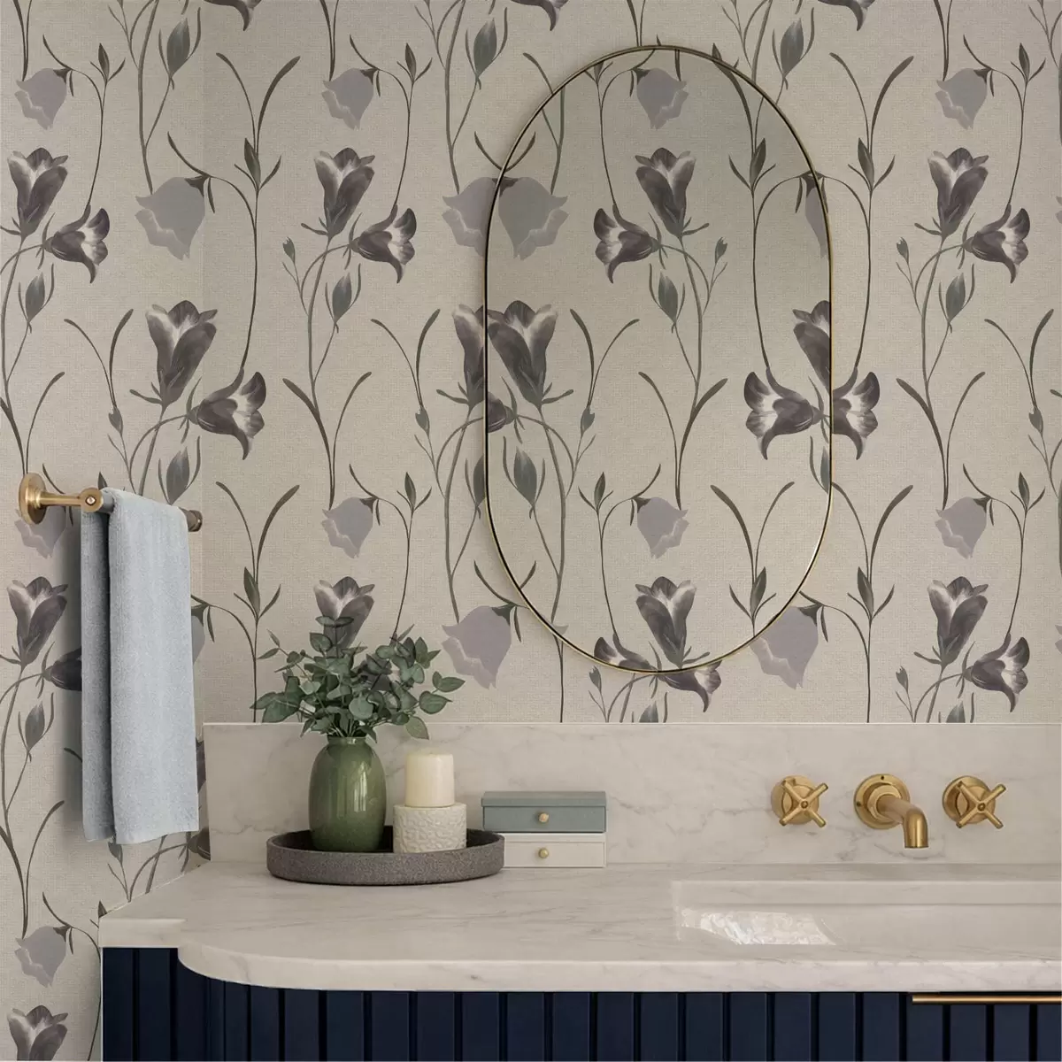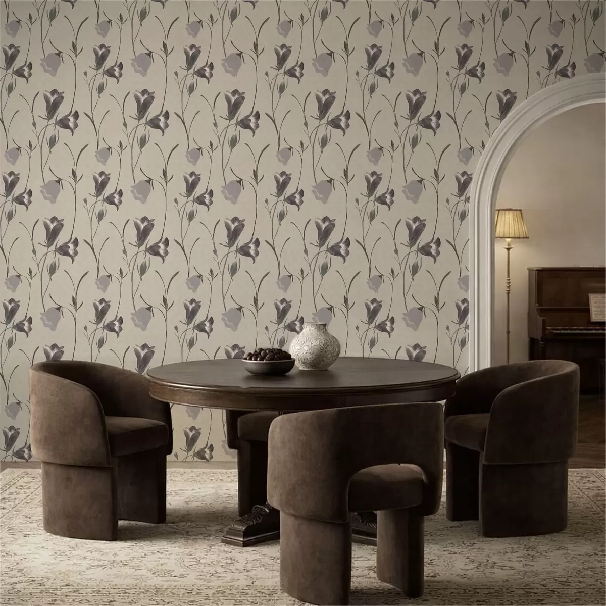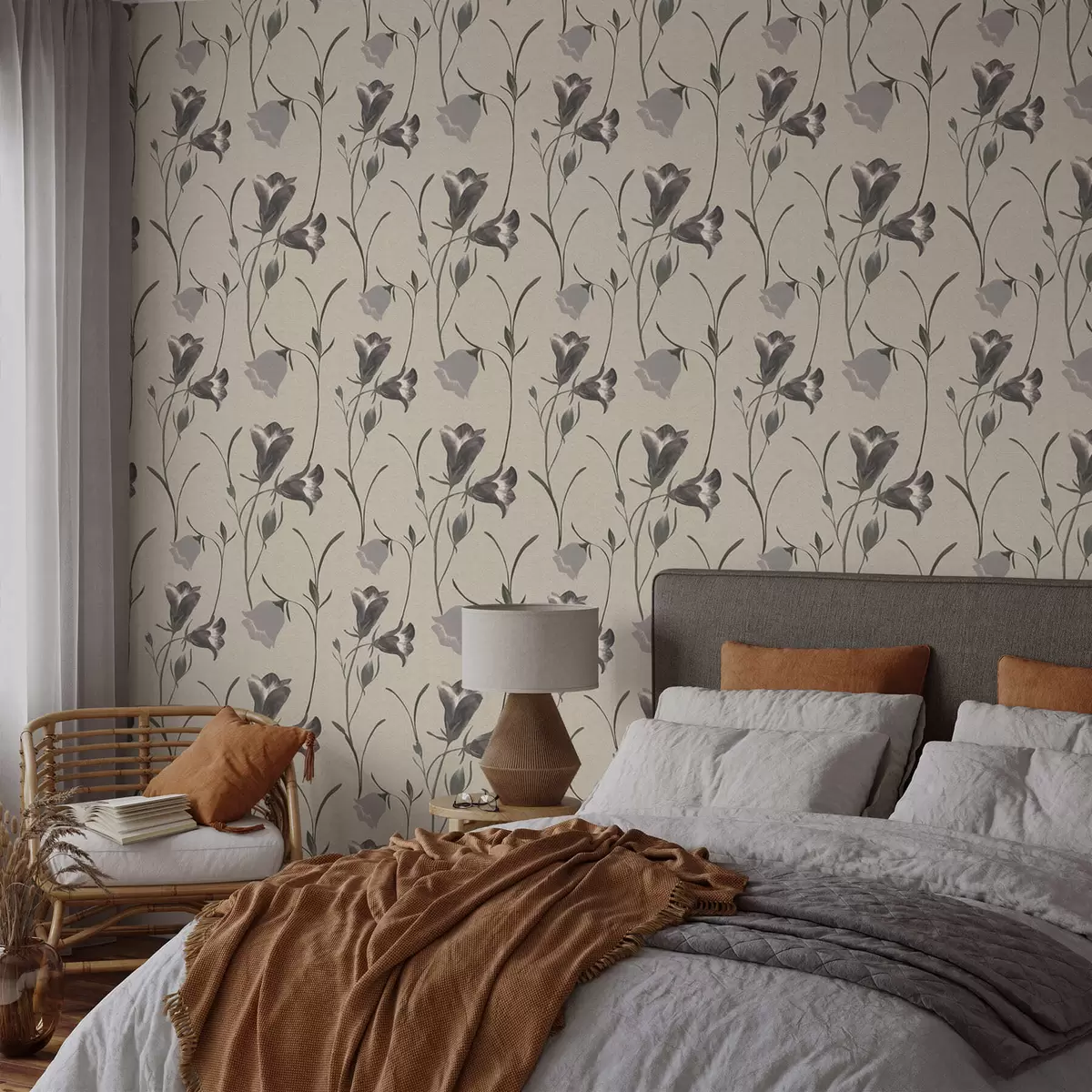 Wallpapers Gray bell flowers on light beige background No. a01119