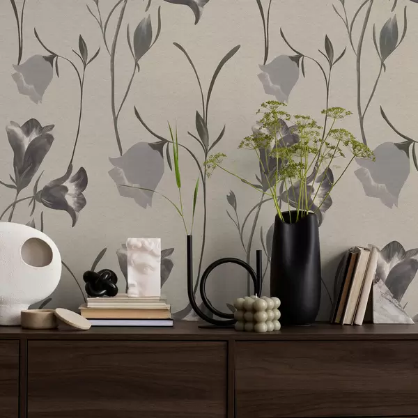 Wallpapers Gray bell flowers on light beige background No. a01119