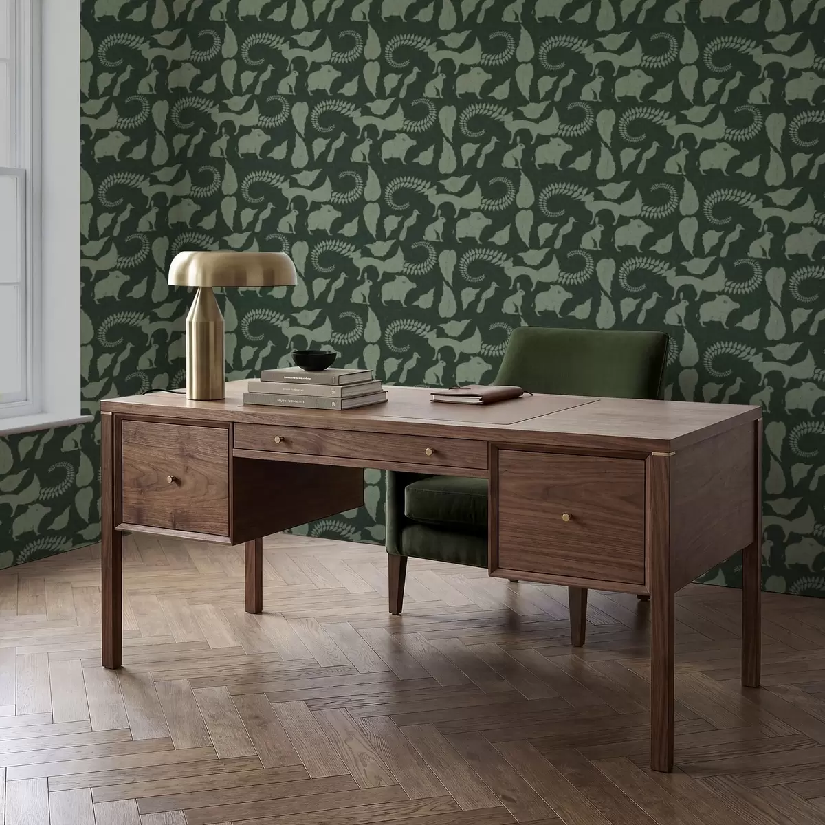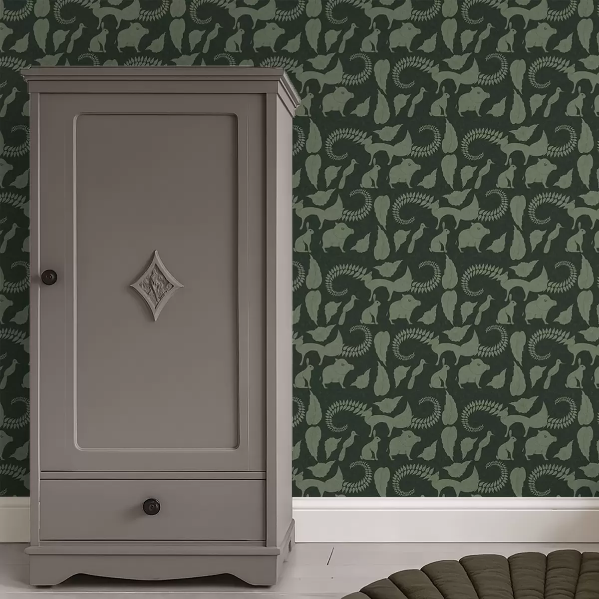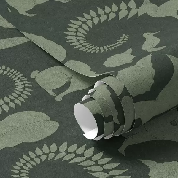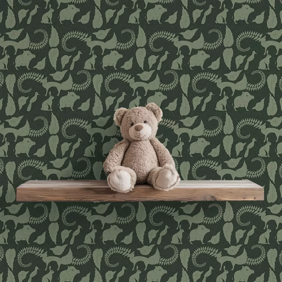 Wallpapers Forest pattern with animals on green background No. a01121v1