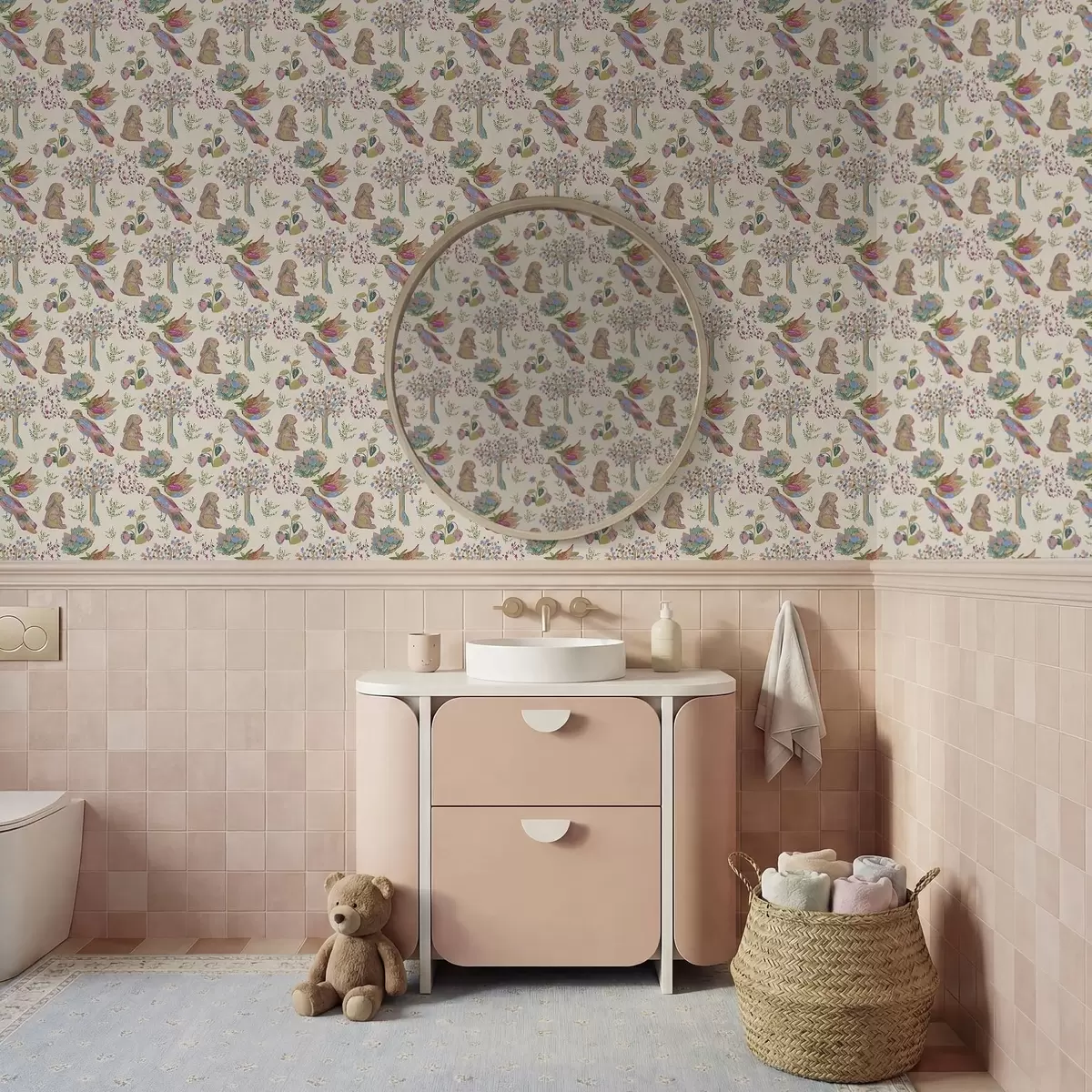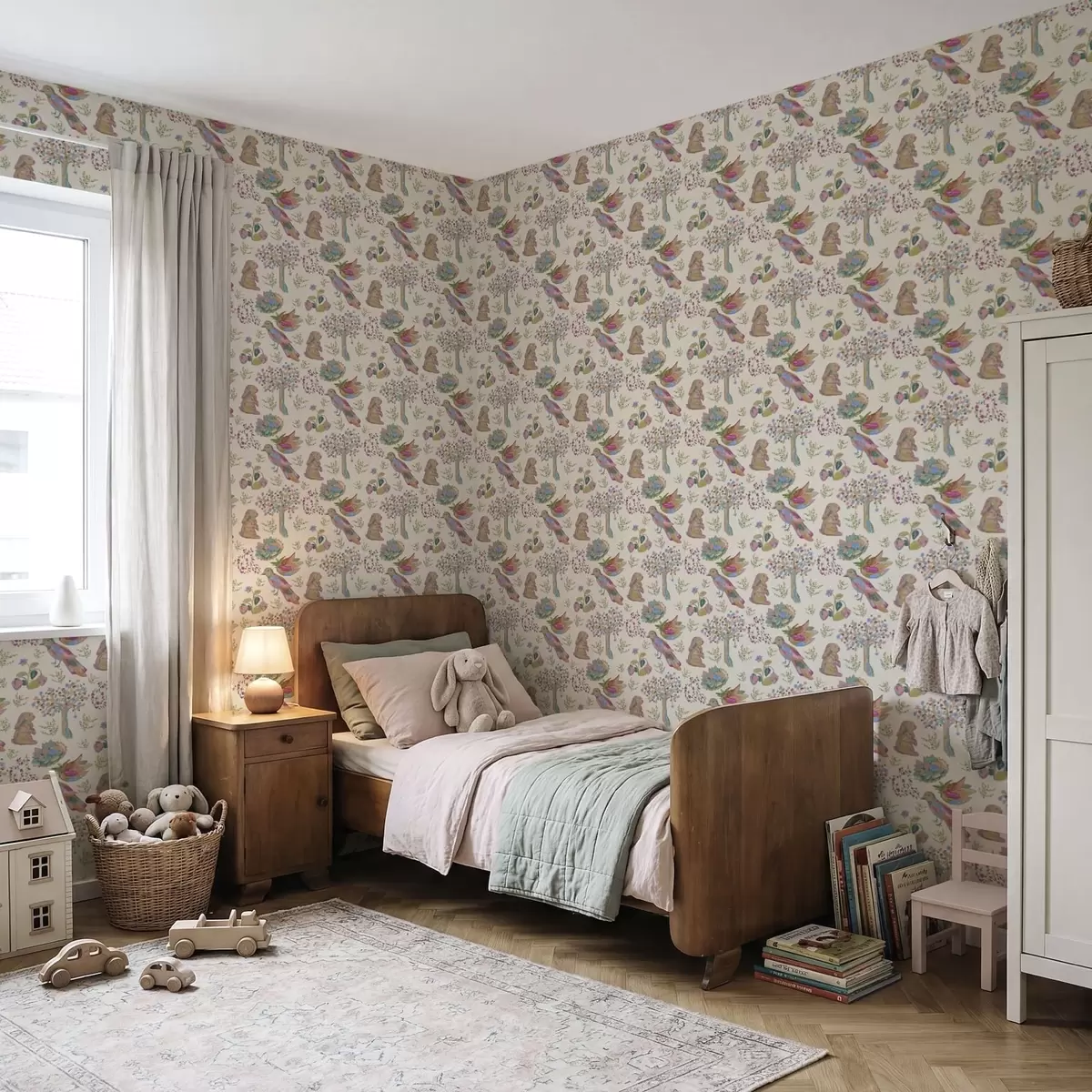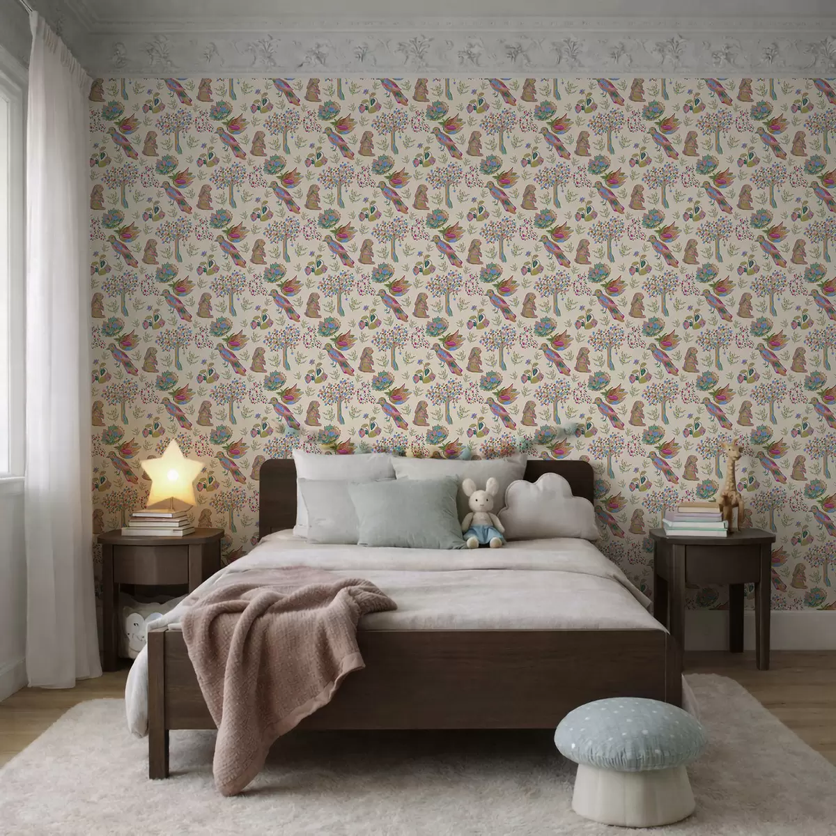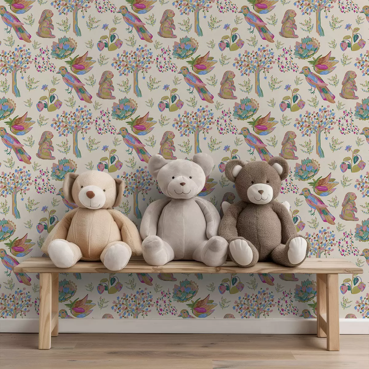 Wallpapers Colorful kids pattern with birds and rabbits No. a01127