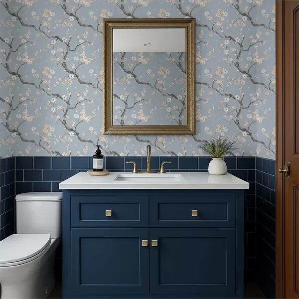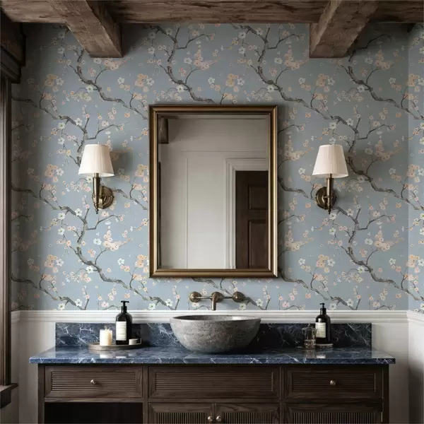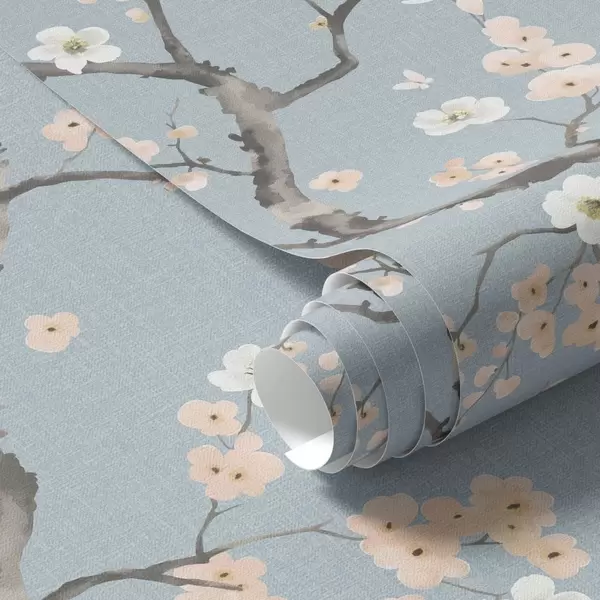 Wallpaper Branches with blossoms on blue background a01155