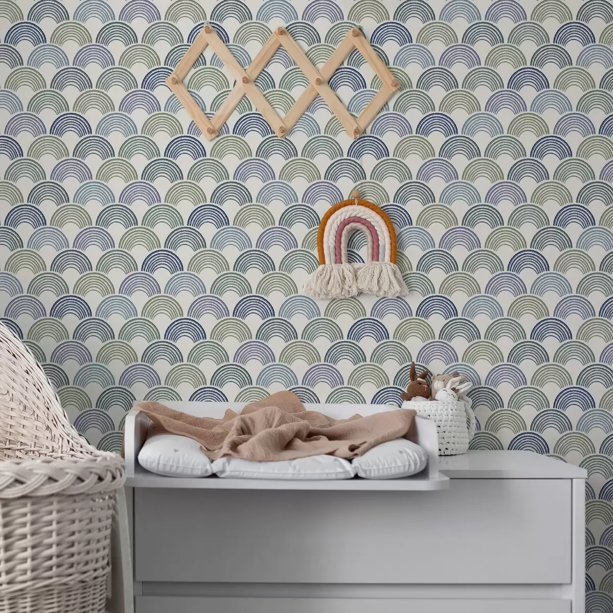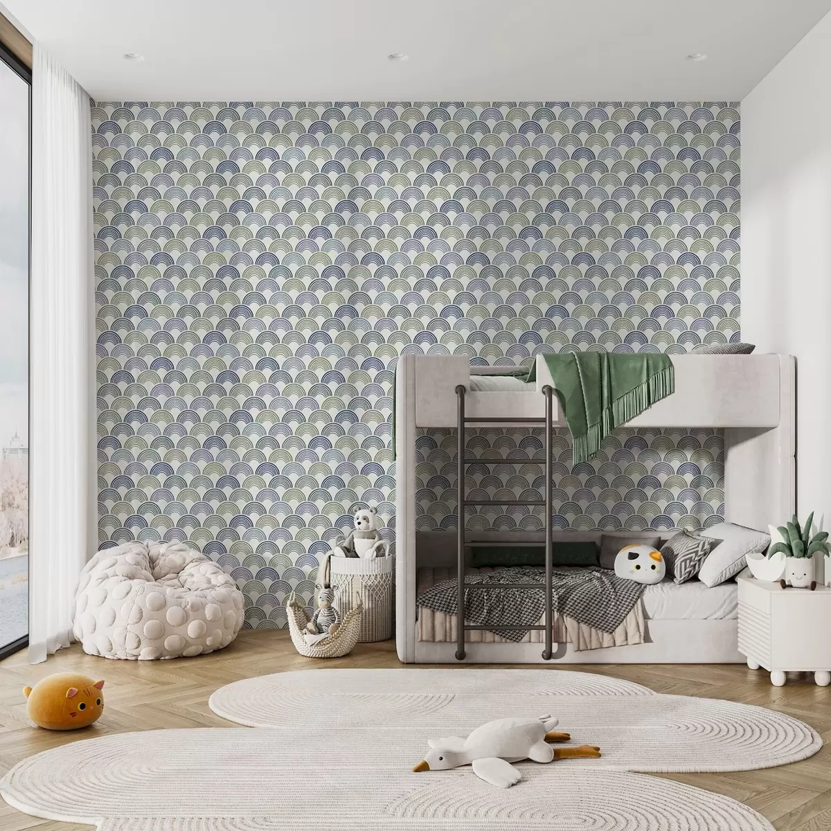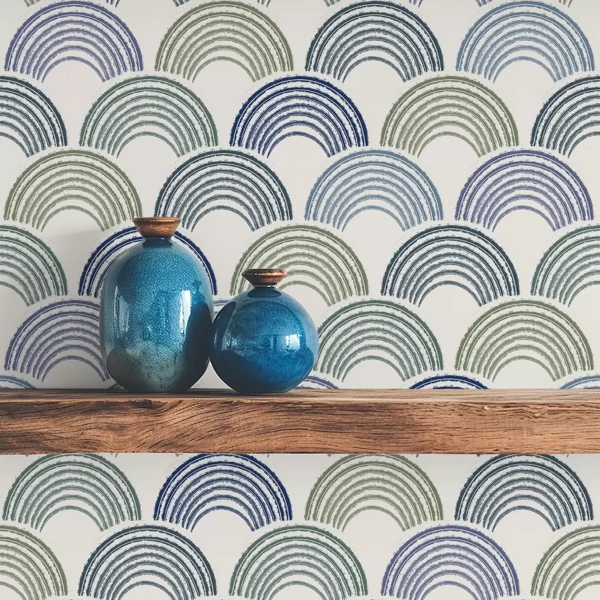 Wallpapers Blue and green arches in repeating pattern No. a01164v2