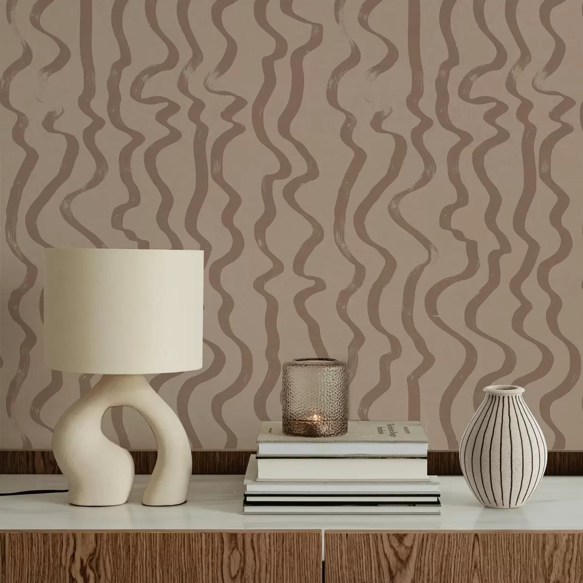 Wallpapers Beige wavy lines on light background No. a01168v2