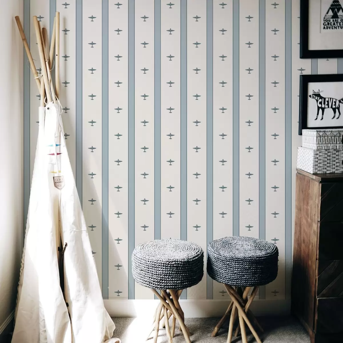 Wallpapers Small airplanes in stripes on blue background No. a01171