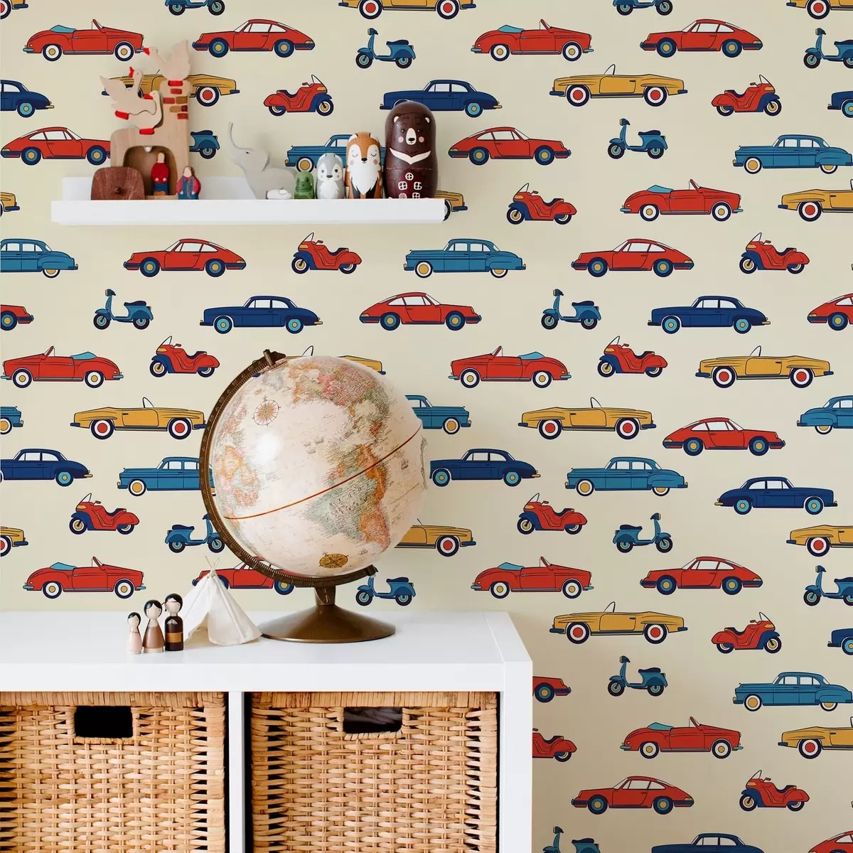 Wallpapers Bright retro cars and scooters on light background No. a01172v1
