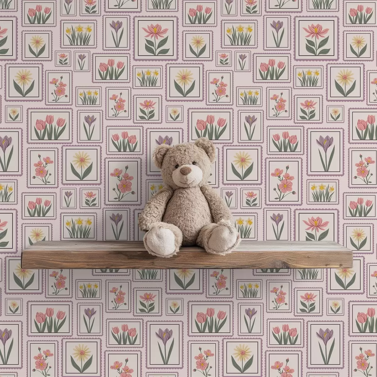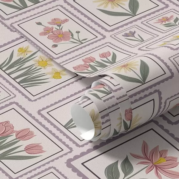 Wallpapers Framed floral illustrations in lilac tones No. a01173v2