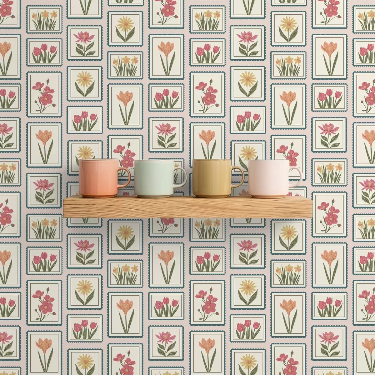 Wallpapers Framed floral illustrations with borders No. a01174