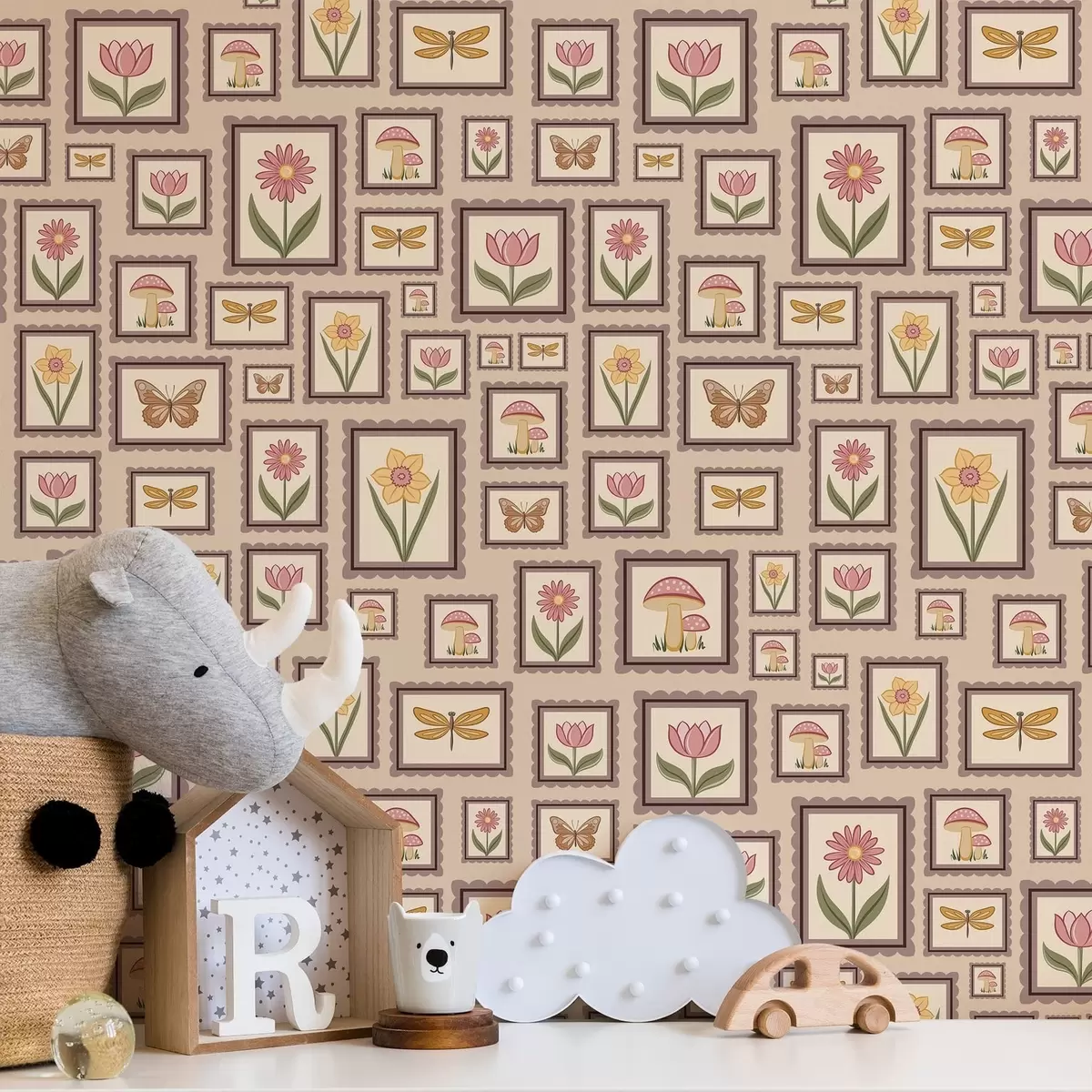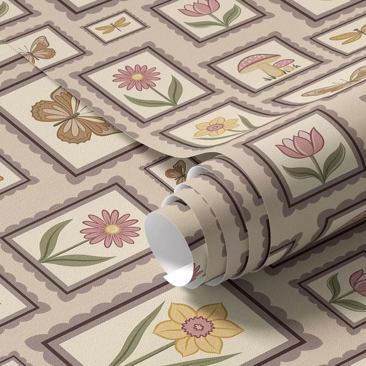 Wallpapers Framed illustrations in warm beige tones No. a01176v2
