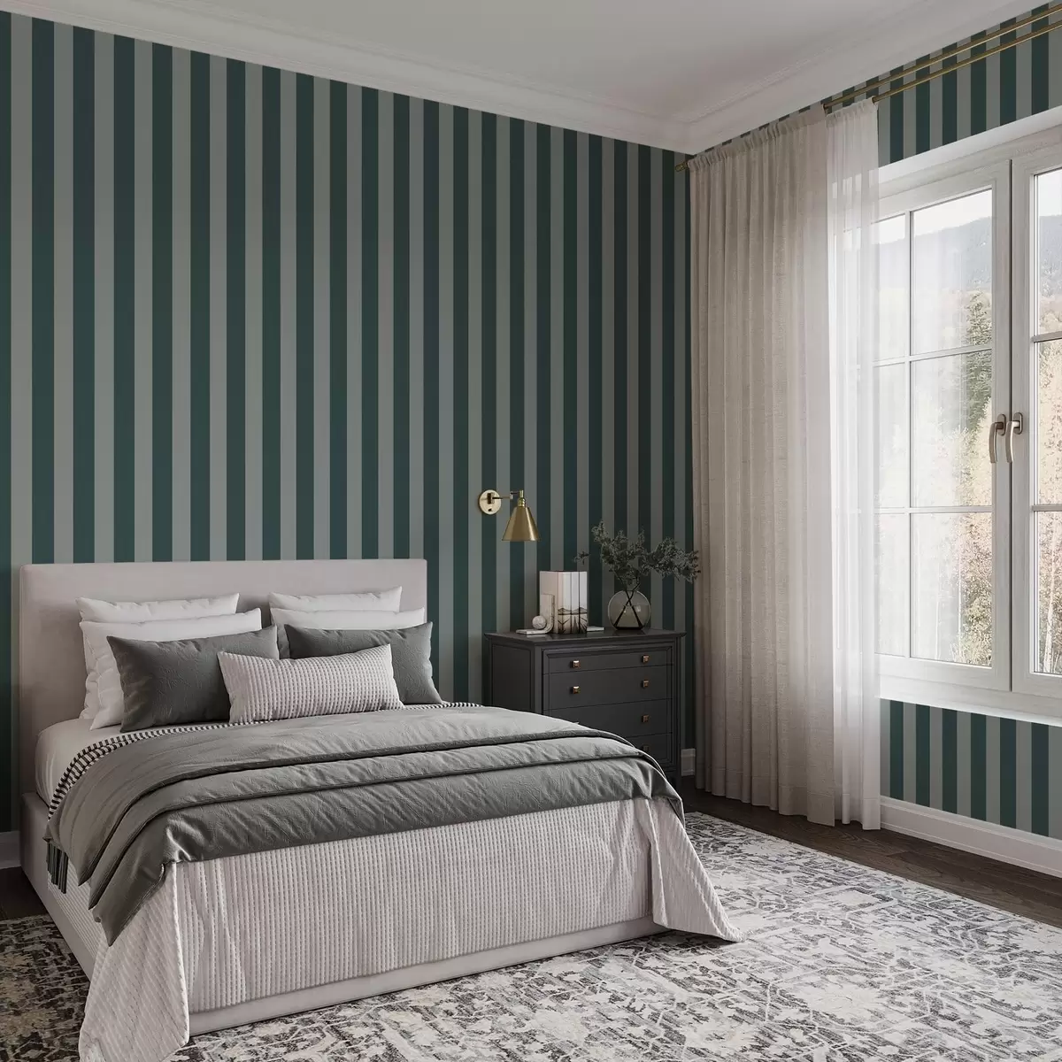 Wallpapers Green and light vertical stripes No. a01179v1