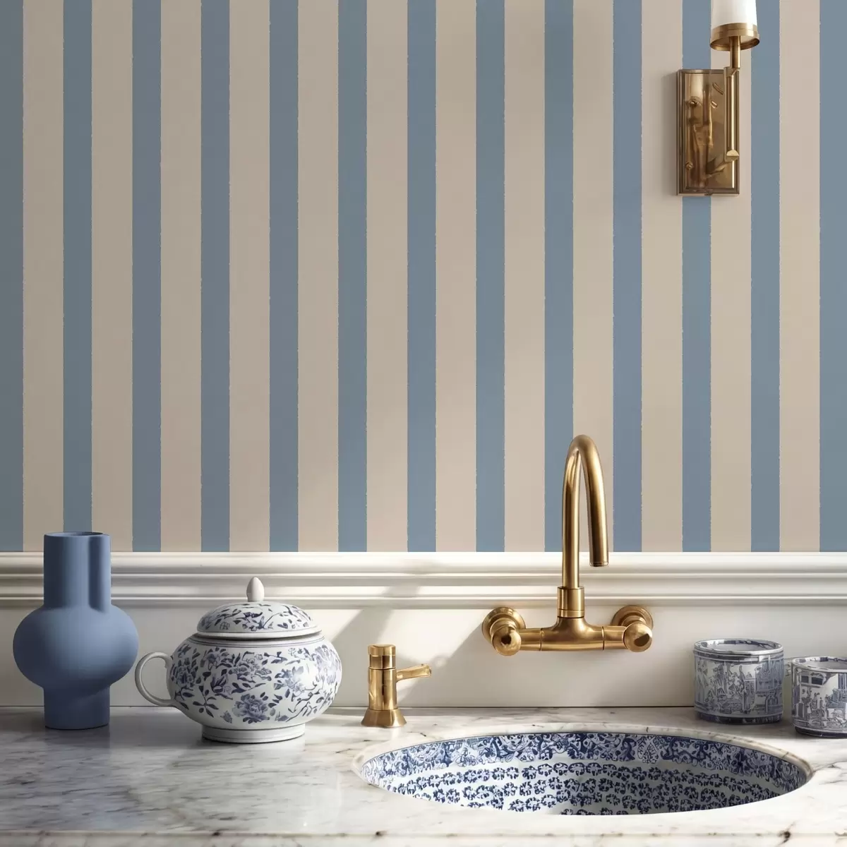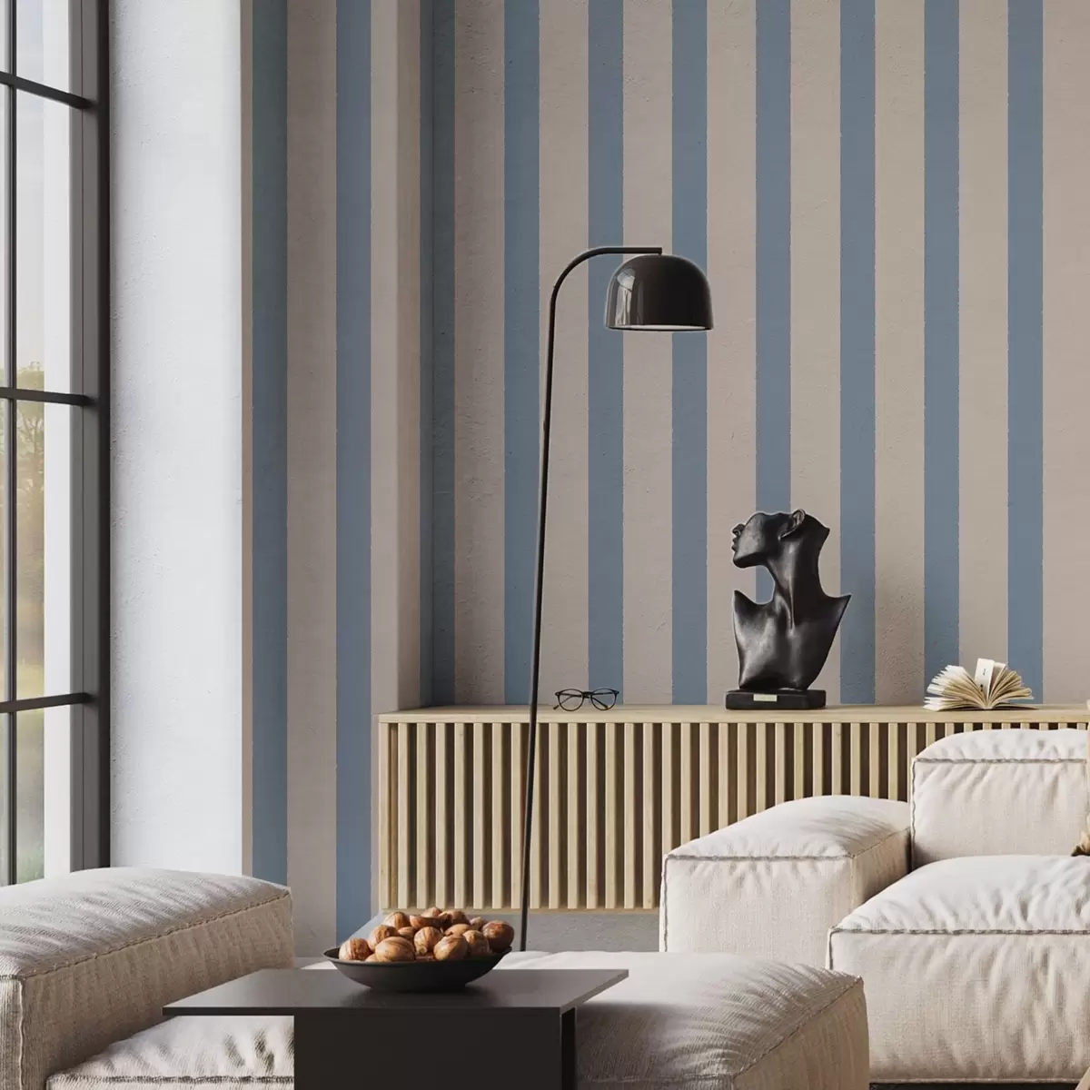 Wallpapers Beige and light blue vertical stripes No. a01180v3